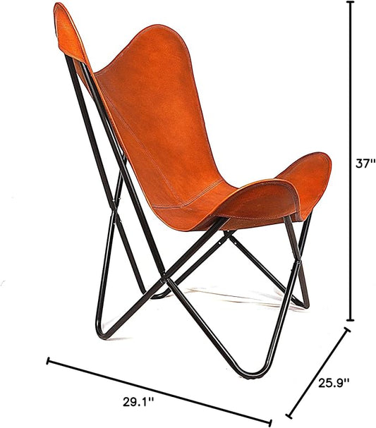 Leather Butterfly Chair Handmade with Powder Coated Folding Iron Frame