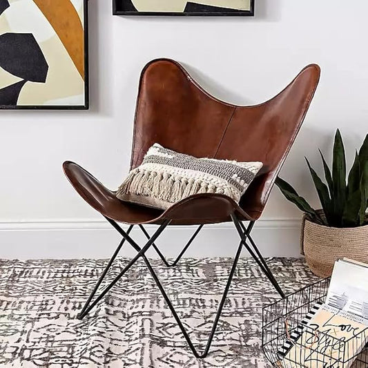 Leather Butterfly Chair-Handmade with Powder Coated Folding Iron Frame