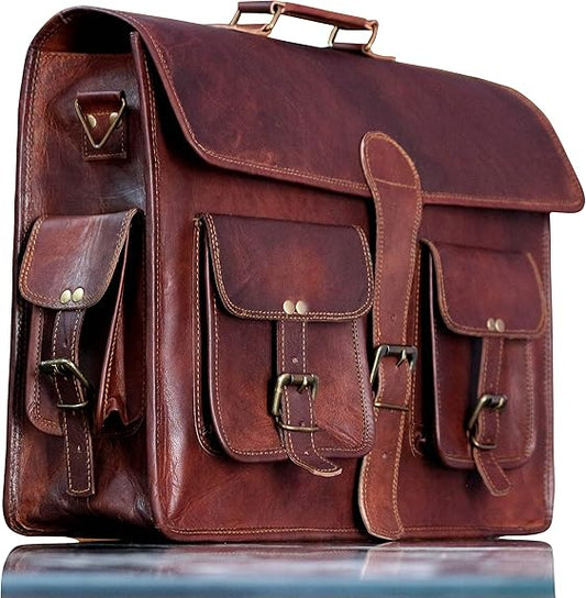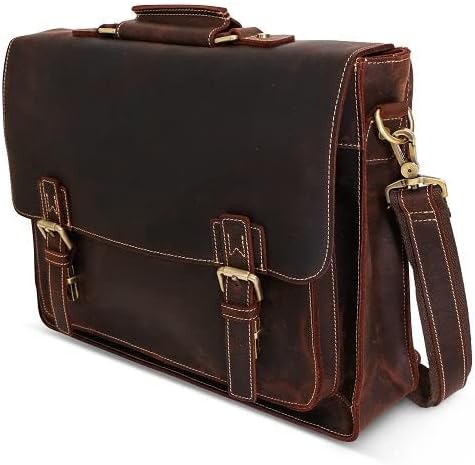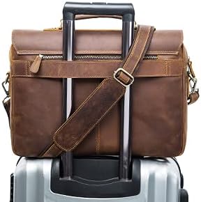 Leather Messenger Bag Brown 18 Inch Air Cabin Briefcase Distressed Computer Shoulder Large School Bag Crossbody Laptop Satchel