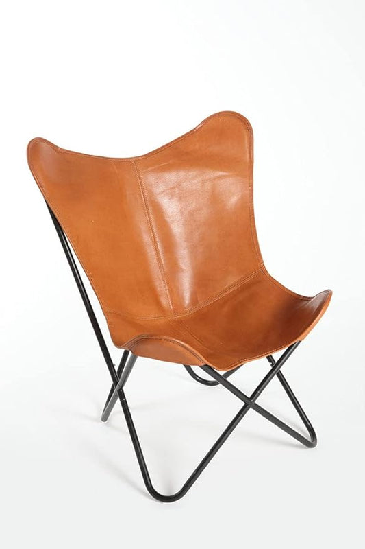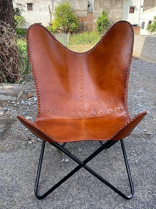 Brown Vintage Leather Arm Butterfly Chair Handmade with Powder Coated Folding Iron Frame
