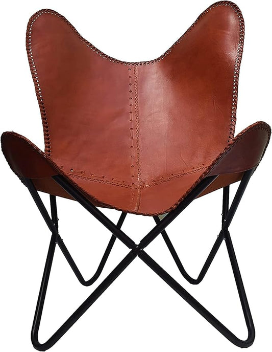 Handmade Tan Leather Arm Chair Cover Leather Butterfly Chair Home Decor