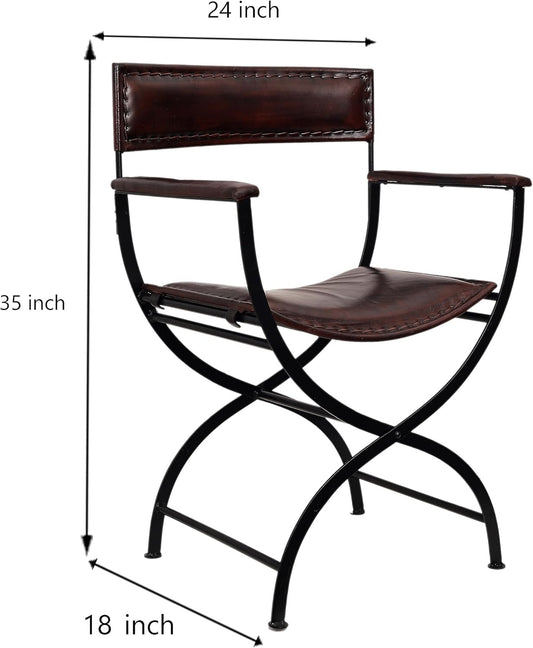 Rajeriya Mid-Century Modern Folding Chair, Comfy Leather Leisure Chair Lazy Chair with Metal Leg for Living Room Bedroom Office Apartment, Brown