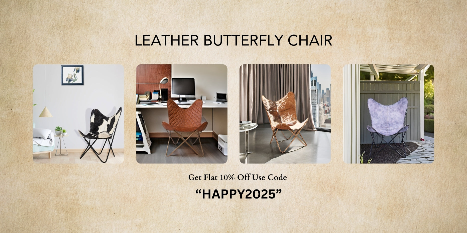 Handmade Tan Leather Arm Chair Cover Leather Butterfly Chair Home Decor