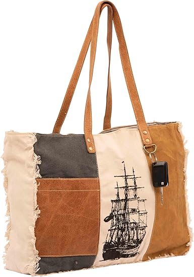 Upcycled Canvas Hand Bag and Cowhide Tote Bags for Women, Boho Bag for Women, Canvas Weekend Bags for Women