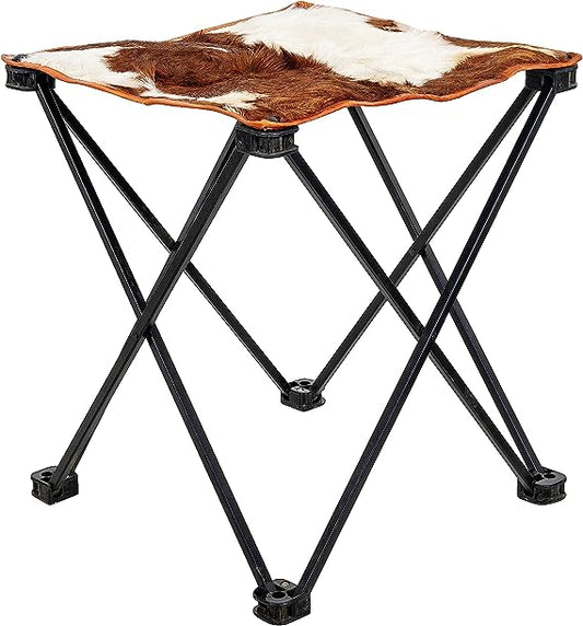 Vintage Hair-on Camping Stool, Portable Folding Stool for Outdoor Walking Hiking Fishing Camping Chair Foot Stool, Collapsible, Portable Footrest 20x17inch