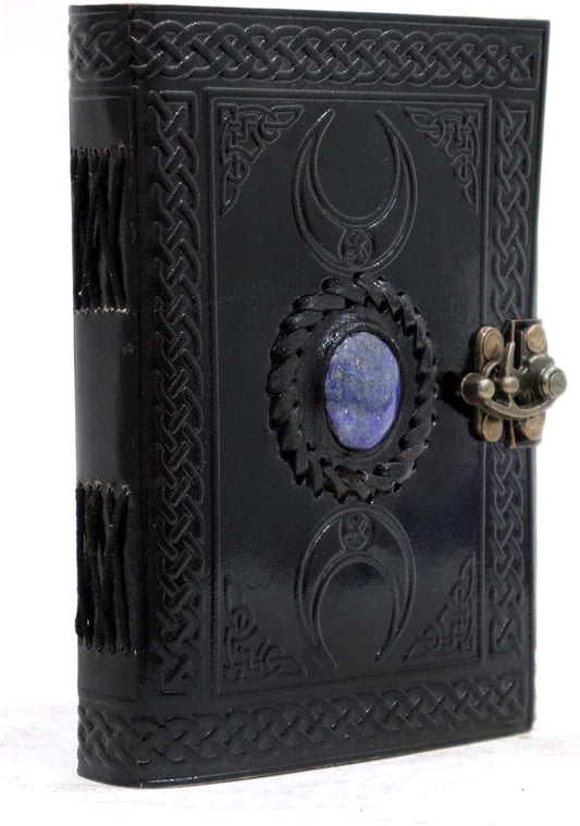 Moon Blue Lapiz Gemstone Studded Vintage Writing Handmade Leather Notebook Journal Unlined Antique Handmade Deckle Edge Vintage Paper, Leather Sketchbook, Drawing Journal, Great Gift Clasp Office Product 5x7