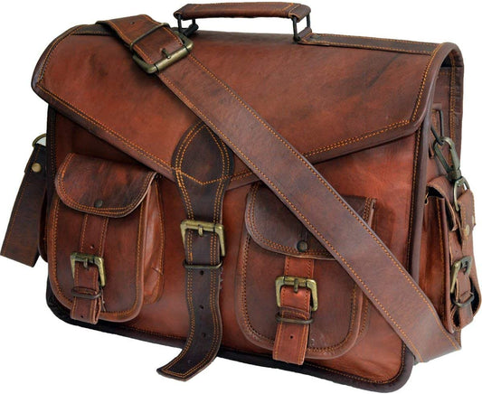 18 Inch Handmade Leather Messenger Office Cross body Laptop Briefcase Computer College Satchel Bag for Men and Women