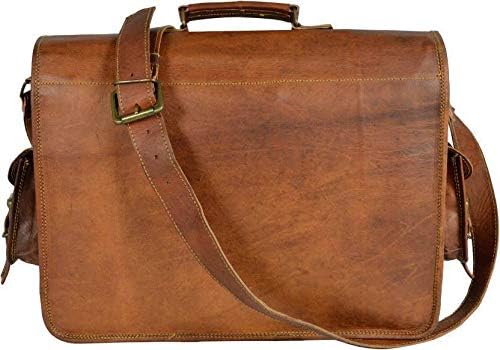 18 Inch Handmade Leather Messenger Office Cross body Laptop Briefcase Computer College Satchel Bag for Men and Women
